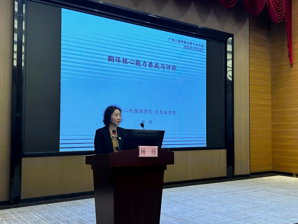 11月10日上午10:30,外语学院在花都校区图书馆成功举办了工商大讲堂2023年第三十期学术讲座,主题为“翻译核心能力养成与评价”。本次讲座由北京第二外国语学院日语学院院长、博士生导师杨玲教授担任主讲嘉宾,吸引了近百名对翻译和外语学习感兴趣的师生参加。