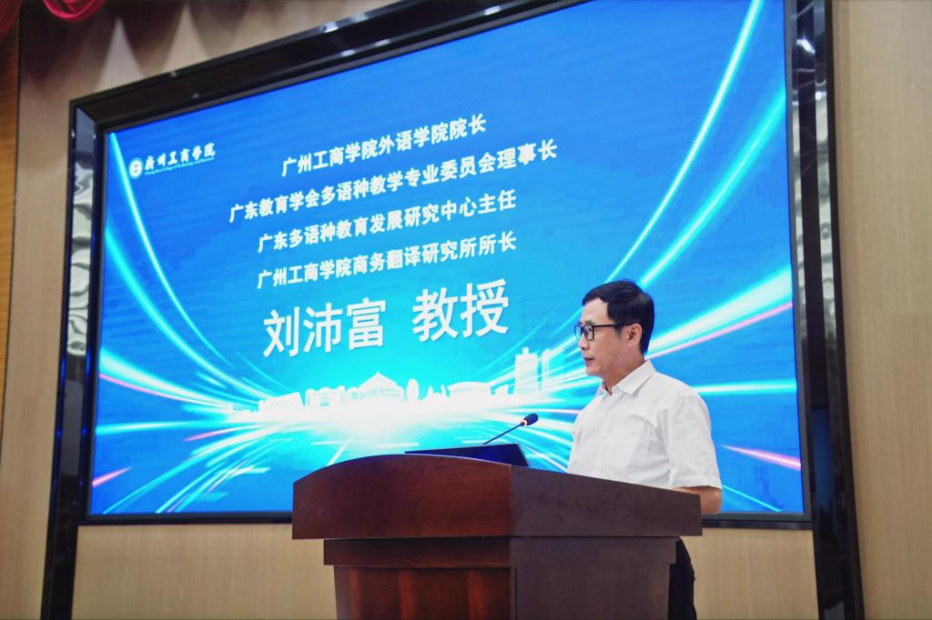 教育部高等学校外国语言文学类专业教学指导委员会日语分委会委员、教育部日语专业虚拟教研室负责人、中国国际贸易学会日语与国际商务专业教学研究委员会主任委员陈多友教授致开幕词。他概括大会主旨,强调数字化背景下日语教育面临新挑战,要用新技术更好地服务“一带一路”建设和区域合作。他表示,应立足大湾区优势,以日语为纽带,促进互学互鉴与合作共赢。