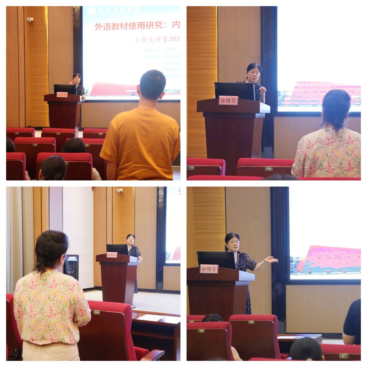 【本网讯】10月16日,“工商大讲堂”2025年第十六期学术讲座在kaiyun开云官方网站花都校区成功举办。本次讲座由外语学院、广东多语种教育发展研究中心、kaiyun开云官方网站商务翻译研究所联合主办,特邀华中科技大学二级教授、博士生导师徐锦芬担任主讲嘉宾,围绕《外语教材使用研究:内容、方法及理论框架》展开深入讲解。讲座由外语学院党委书记、院长刘沛富教授主持,外语学院百余名教师到场聆听。