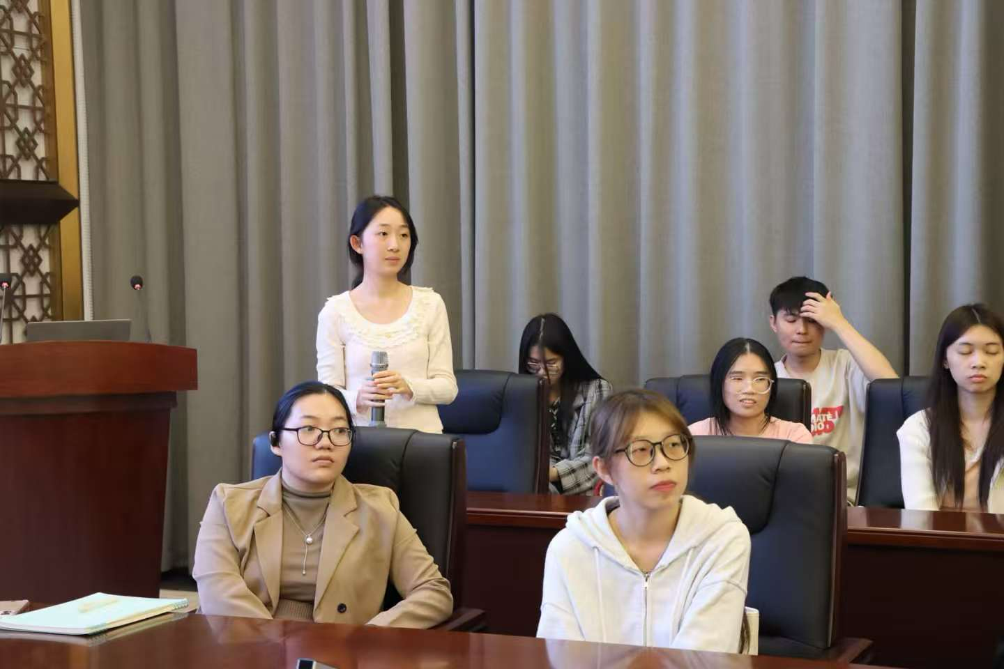 在互动问答环节中,学生们围绕口译与笔译方向选择、复试流程、备考规划以及考研与教师编制“双轨”发展等问题积极提问。两位专家结合行业发展趋势和自身经验,给予了针对性建议,鼓励同学们立足自身基础,把握报考窗口期,优先选择契合个人发展定位的优质院校。