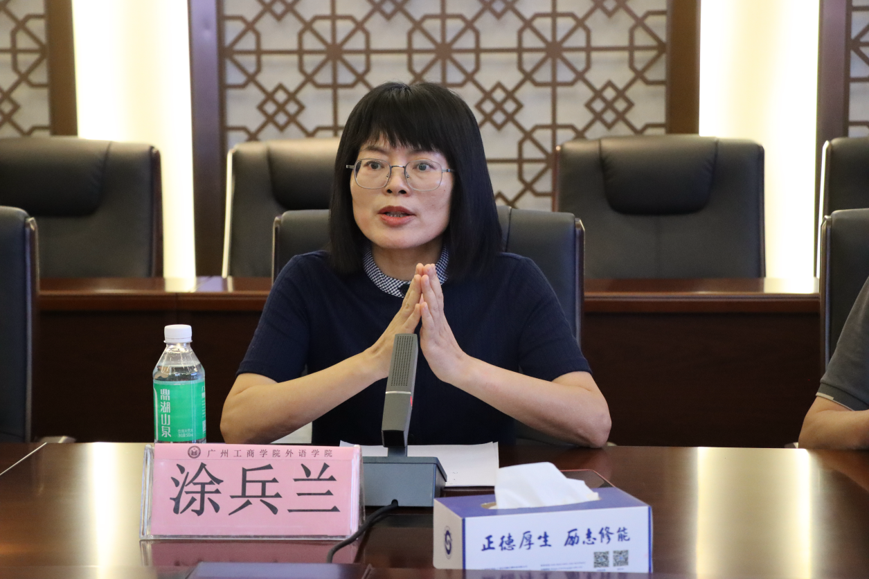 涂兵兰教授围绕金融翻译特色、师资力量与科研教学成果等方面,全面介绍了广东金融学院外国语言文化学院的办学优势。她表示,学院师资结构优化,博士学位教师及高级职称教师比例持续提升,教学科研能力不断增强。近年来,多门课程入选省级一流本科课程,为高质量推进翻译硕士研究生培养提供了有力保障。