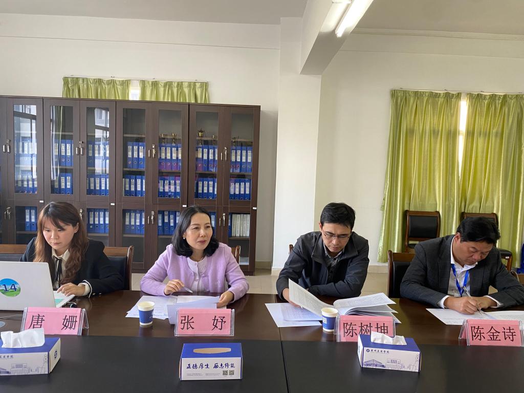 11月23日下午,外语学院在外语楼301会议室召开2026届商务英语专业毕业论文选题论证会。会议特邀广东外语外贸大学教务部部长陈金诗教授、广东金融学院陈树坤教授、唐姗副教授及广东培正学院张妤教授四位校外专家莅临指导,对本届商务英语专业全体学生的毕业论文选题进行全面审核与专业论证。