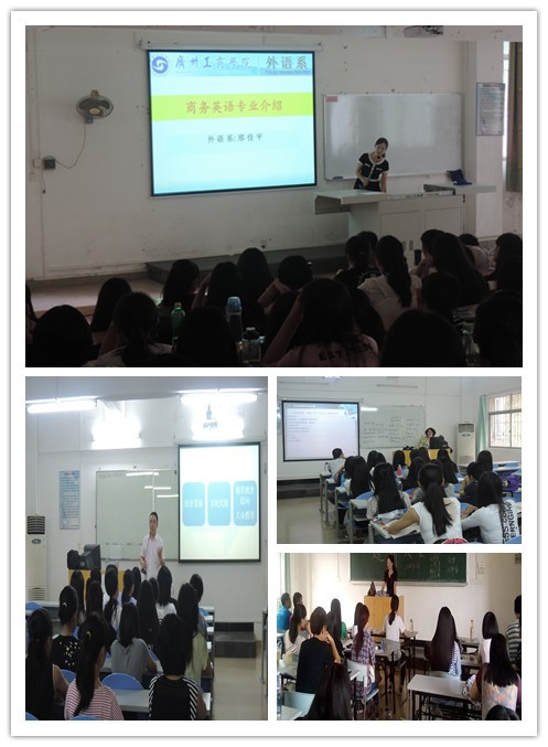 2014年9月26日下午4点在计算机楼103、外语楼103、104、505,分别召开商务英语、商务日语、旅游英语、应用英语新生专业介绍会,向外语系2014级全体新生提供本专业的相关信息,使新生对未来的学习方向有所了解。此次专业介绍会邀请的主讲嘉宾分别是:外语系商务英语专业教研室主任邢佳平老师、商务日语专业教研室主任高亮老师、旅游英语专业教研室主任周正秀老师、及应用英语专业教研室主任周燕老师。