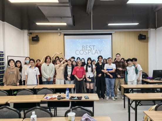 活动最后,全体师生合影留念,定格这场跨越次元的英语狂欢。本期英语角不仅让同学们在轻松氛围中提升了英语表达能力,更通过cosplay文化展现了青春活力与创意风采。