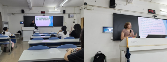 活动伊始,Steve老师通过生动的英语讲解和视频案例,深入浅出地向同学们阐释了网络暴力的定义及其多种表现形式。在随后的讨论环节中,师生们围绕"如何预防网络欺凌"、"网络暴力对身心的影响"以及"网络平台应采取的措施"等议题展开深入交流。来自商学院的南老师也受邀分享了自己的专业见解,为讨论增添了多元视角。