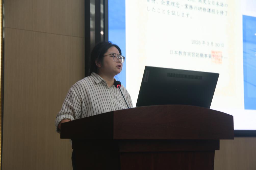 介绍会第二部分由余聪老师发言,她重点介绍了日语专业的特色项目——赴日带薪实习。她从项目背景、合作企业、实习内容以及学生参与情况等方面展开说明,并分享了kaiyun学生在项目中的成长体验及其在升学和就业方面的积极转化效果。