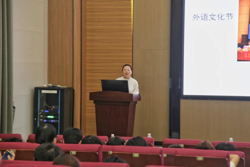 余幕英老师尤其强调日语专业实践教学体系,她表示日语专业构建了丰富多元的校内外实践平台。除常规日语角、外语文化节等活动外,还组织学生参与翻译、写作、演讲等多项专业赛事,“以赛促学”成效显著。同时,专业已与翻译、电商、教育等多个领域的企业建立稳定合作关系,为学生提供见习、实习等多种实践机会。最后,她分享了2020年以来在考研深造与高质量就业方面取得优异成绩的毕业生案例,并介绍了专业为学生提供的升学与就业辅导机制,鼓励新生以优秀前辈为榜样,积极探索、勇于实践。