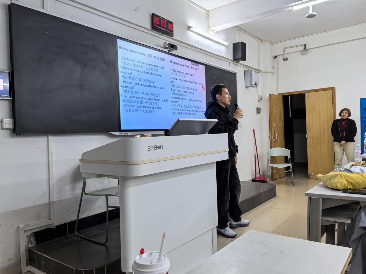 活动伊始,外教老师以泰勒·斯威夫特的歌曲《Ophelia》为引,生动介绍了莎士比亚经典剧作《哈姆雷特》中奥菲利娅这一经典文学形象,引发了同学们对文学作品的浓厚兴趣。在随后的讨论环节,同学们围绕"个人阅读体验"、"书籍如何帮助我们"以及"书籍与世界"三大主题展开深入交流。大家积极分享自己最喜爱的书籍,探讨阅读对英语学习的帮助,畅谈书籍对个人成长的影响,现场气氛温馨而热烈。