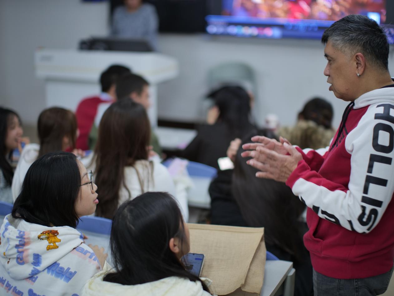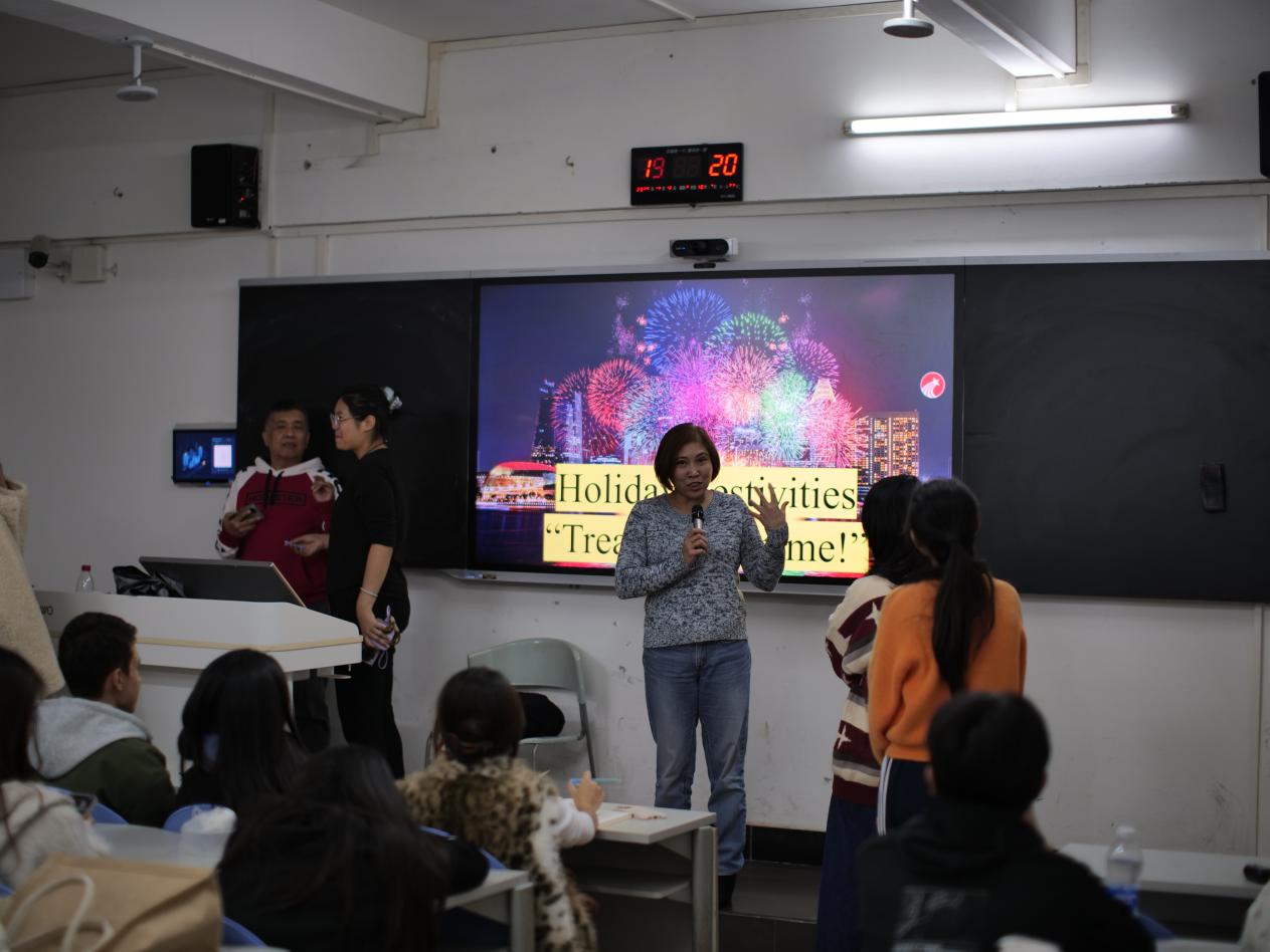 12月16日晚,外语学院本学期第13期英语角活动“Holiday Festivities: Treasure the Time!”在温馨欢快的氛围中圆满落幕,为本学期英语角系列活动画上了一个温暖而精彩的句号。外教Steve、Pamela与商务英语教研室教师Stan共同主持了这场充满节日氛围的交流活动。