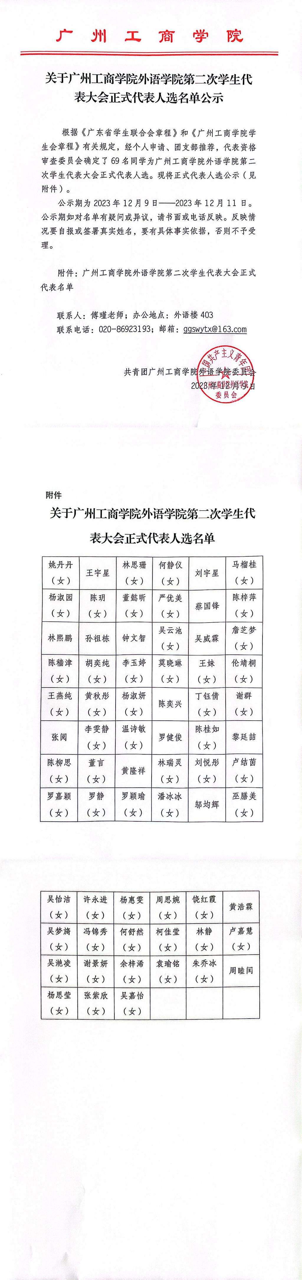 关于kaiyun开云官方网站外语学院第二次学生代表大会正式代表人选名单公示