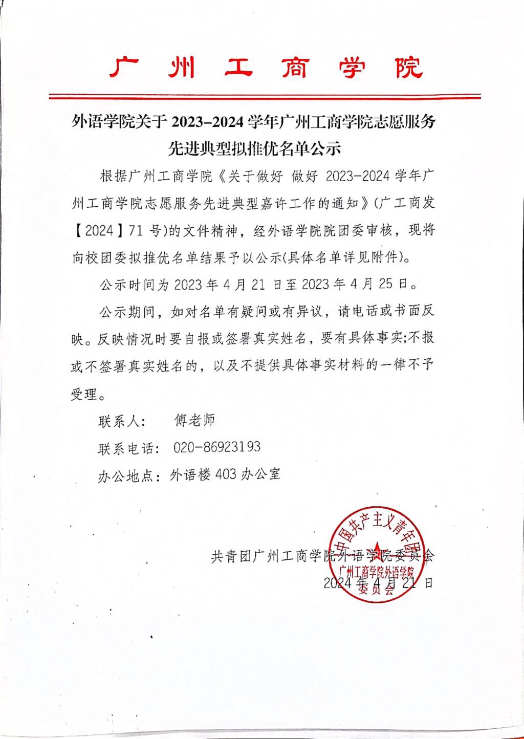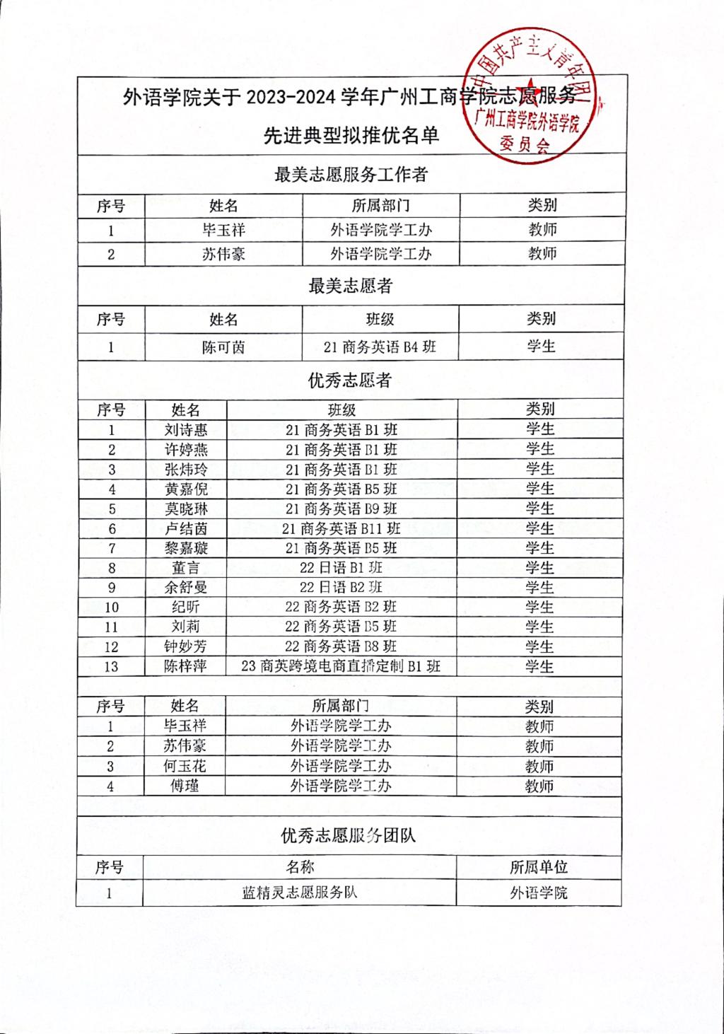 外语学院关于2023-2024学年kaiyun开云官方网站志愿服务先进典型拟推优名单公示
