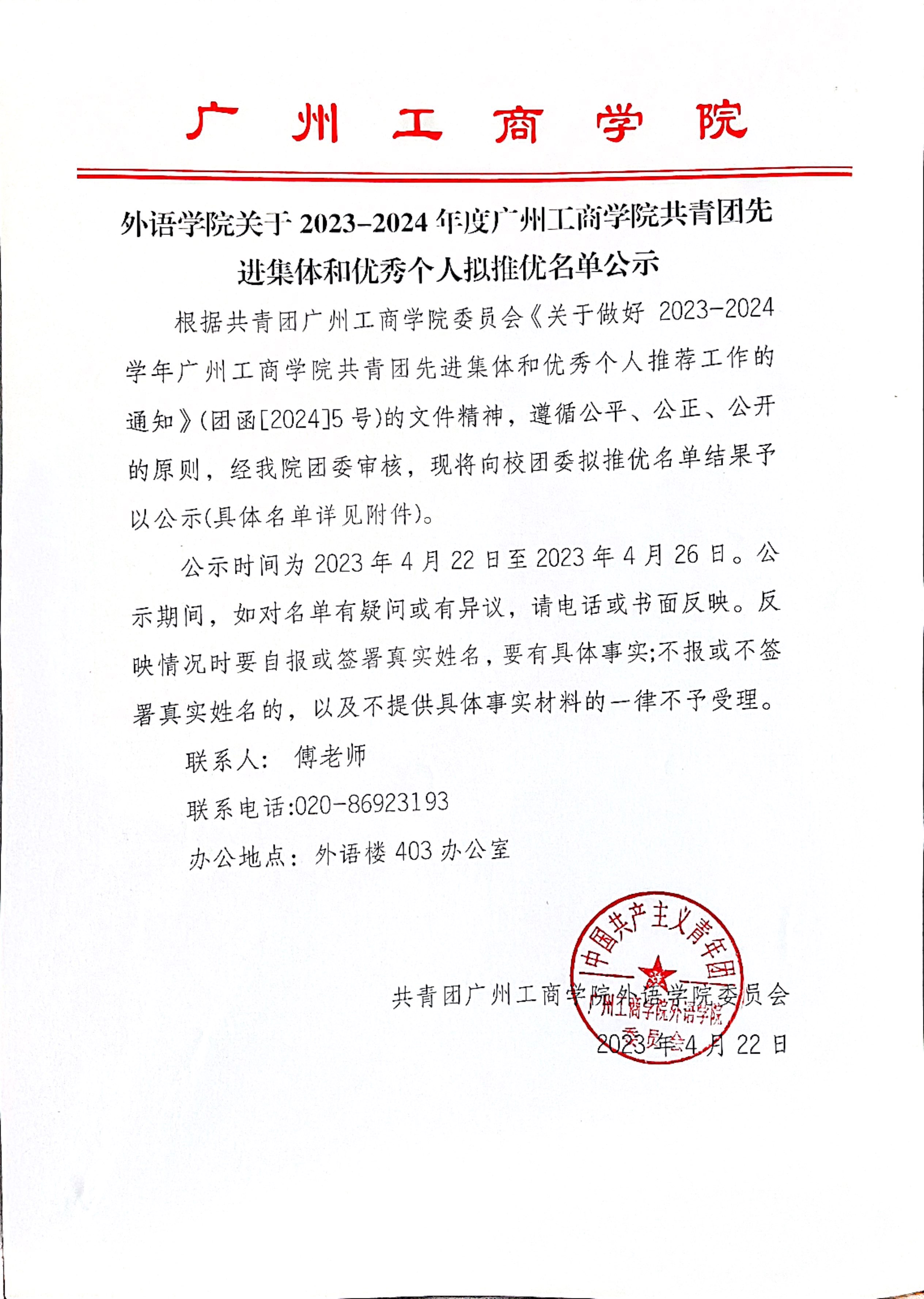 外语学院关于2023-2024年度kaiyun开云官方网站共青团先进集体和优秀个人拟推优名单公示