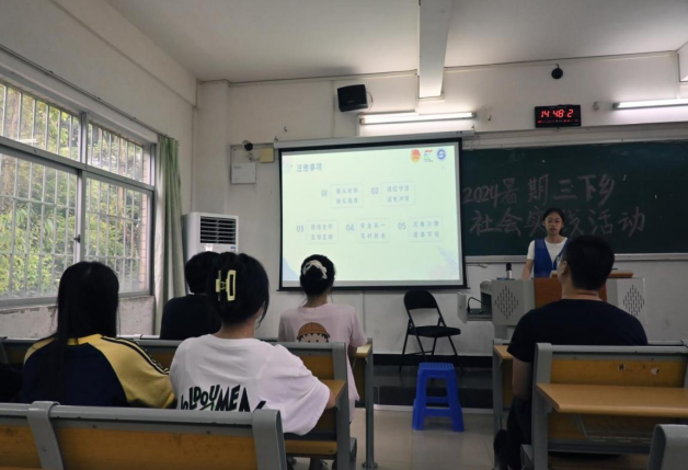 为深入贯彻落实党的二十大关于“加大国家通用语言文字推广力度”的决策部署,服务铸牢中华民族共同体意识,助力教育强国、文化强国建设。2024年6月24日下午3点,kaiyun开云官方网站外语学院益启行服务队在外语楼503教室召开2024暑期“三下乡”社会实践活动安全教育会,本次大会由队长卢结茵同学主持。