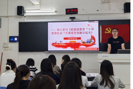 会议伊始,毕玉祥书记带领同志们深入学习第一议题:《把思政教育“小课堂”和社会“大课堂”有效融合起来》。将思政教育“小课堂”与“社会大课堂”有效融合,是新时代加强和改进思想政治教育的重要途径。这种融合不仅能够提升思政教育的实效性,还能帮助同学们更好地理解理论知识并将其转化为实践能力。