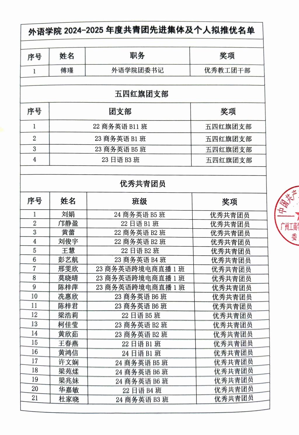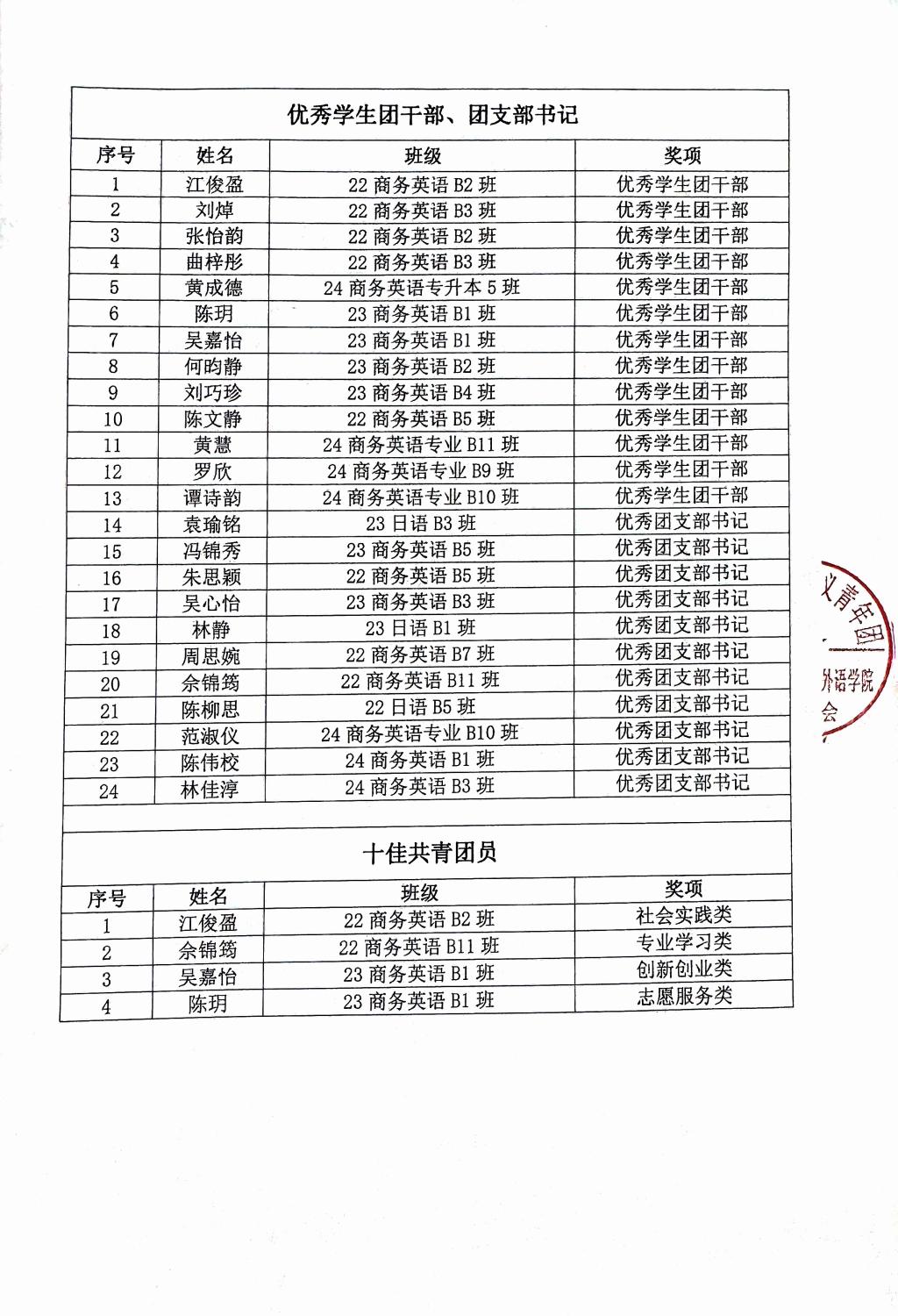 外语学院关于2024-2025年度kaiyun开云官方网站共青团先进集体和优秀个人拟推优名单公示