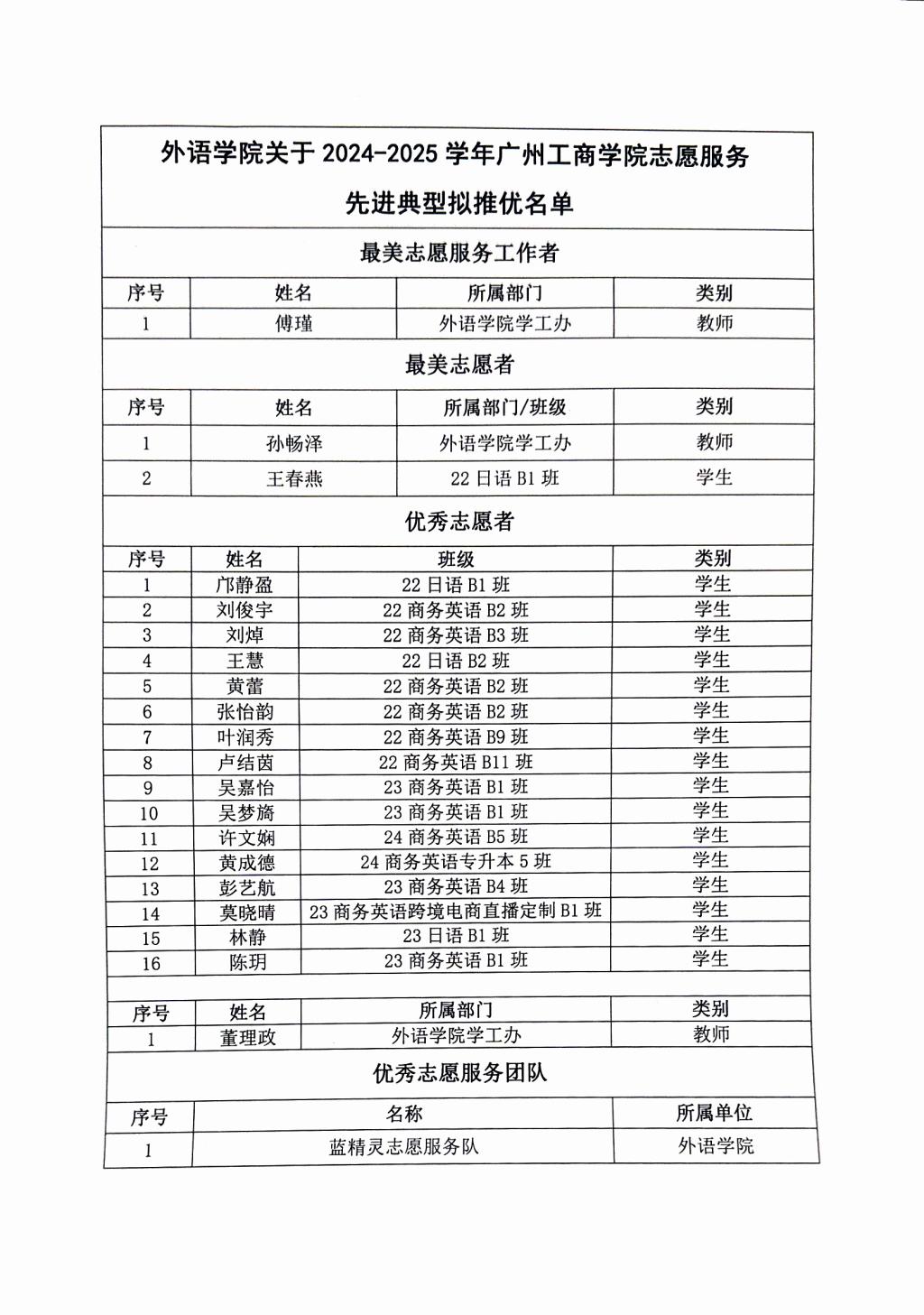 外语学院关于2024-2025学年kaiyun开云官方网站志愿服务先进典型拟推优名单公示