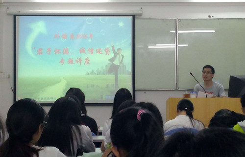 会议上,苏伟豪老师首先对助学贷款的定义进行了详细的介绍,指出助学贷款是我国为帮助家庭贫困大学生顺利完成学业向大学生提供的一项优惠政策,因此,诚信还款是每一位贷款学生应承担的责任。苏老师通过大学生助学贷款还款的相关实例从正反两方面强调贷款学生毕业后还息的注意事项及违约的严重性,并提醒14级毕业生要做好毕业还贷的准备。