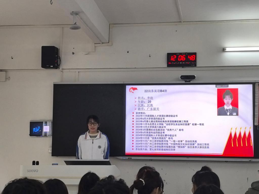 在发展对象转预备党员的审议环节,罗颖瑜、卢结茵、李欣、杨伊曼四位发展对象依次上台,向党支部汇报了自己的基本情况、入党动机、现实表现等。她们纷纷表示,将始终坚定共产主义信仰,为党和人民的事业不懈奋斗。入党介绍人毕玉祥、孙畅泽也详细介绍了发展对象的考察培养情况,都同意其转为预备党员。
