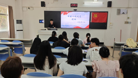 为深入理解和贯彻中央八项规定精神,加强学生党员的作风建设,2025年5月22日,外语学院学生第三党支部在外语楼302课室举行了深入贯彻中央八项规定精神学习教育会。本次学习会由邓星同志主持,党支部全体学生党员积极参与。