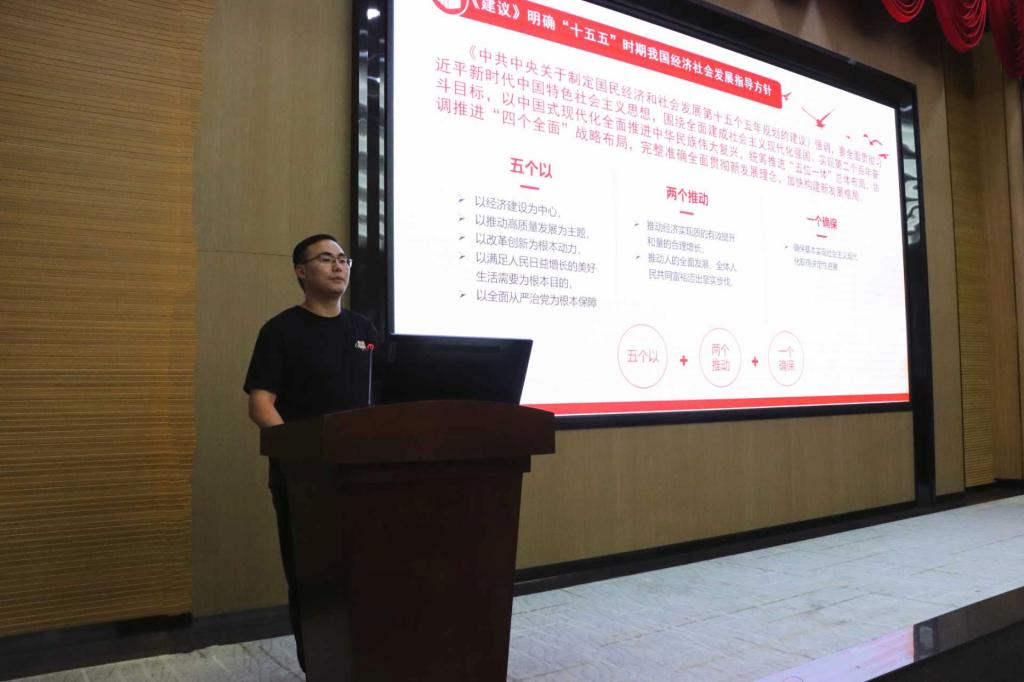 培训班专题讲座从党的二十届四中全会召开的时代背景、全会审议通过的《中共中央关于制定国民经济和社会发展第十五个五年规划的建议》,深入阐释了“十五五”时期作为基本实现社会主义现代化关键阶段的承前启后地位,详细解读了“六个坚持”重要原则及高质量发展、科技自立自强、高水平对外开放等七大发展目标。结合外语专业特色,毕玉祥同志强调,青年学子要将全会精神与专业学习深度融合,既要胸怀“国之大者”,深刻认识中国式现代化的丰富内涵,也要立足语言专长,在跨文化交流、国际传播等领域主动担当,以语言为桥讲好中国故事,将个人理想融入国家发展大局。