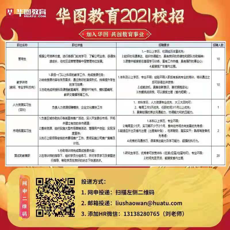 管培生、人力资源实习生、市场拓展实习生、助教兼职等
