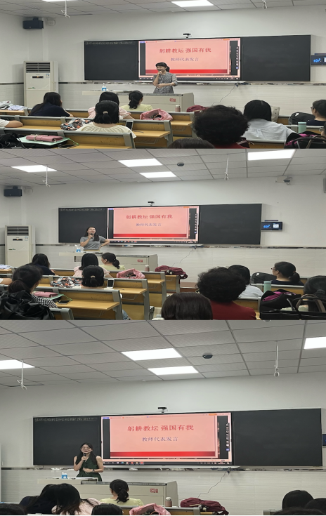 在活动中,老师们首先观看了习近平总书记致信全国优秀教师代表的相关报道,并积极分享了自己的思想感悟。周桂方老师结合多年教学经验,认为教师要深耕讲坛,努力提升教学效果,更新教学理念。骆玮老师认为要做好学生成才路上的摆渡人,培养社会责任感强、综合素质高的人才。郭宇琼老师认为高校教师要牢记为国育人的初衷。青年教师罗月兴认为青年教师要做好科研,助力国家发展,做中华民族梦之队的筑梦人。
