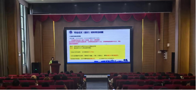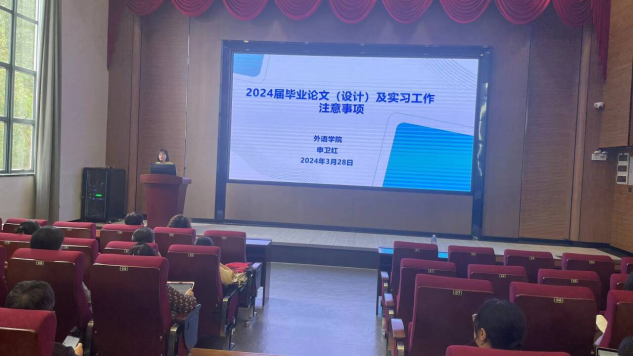 会上,外语学院分管实践教学工作的申老师详细说明了论文和实习工作前期出现的各种情况和应对策略,并对后续工作时间安排以及可能会出现的各种问题进行了详细的解读和指导。之后,针对集中实习与分散实习期间可能遇到的各种问题和挑战,申老师也给出了中肯的解决方法,并强调了毕业论文和实习工作纸质材料的注意事项。