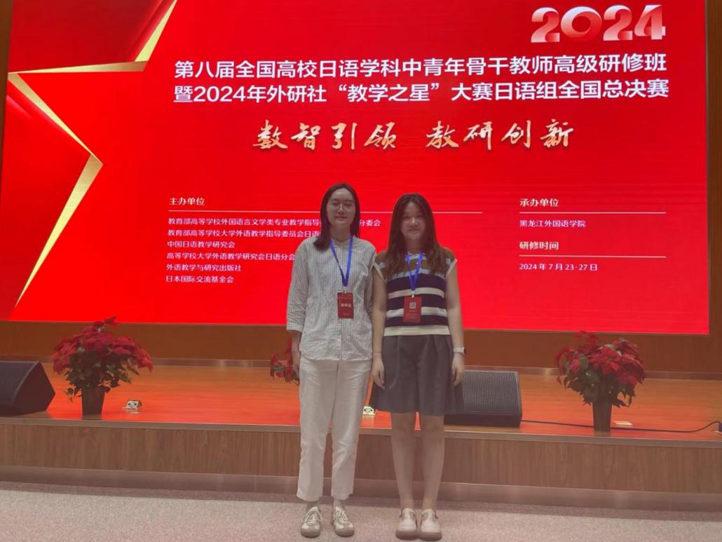 我院日语专业教师夏逸慧和商思航参加此次研修班。两位老师首先观摩了2024年外研社“教学之星”大赛日语组全国总决赛。赛事汇聚全国优秀日语教师,参赛者展示各自独特的教学风格与创新方法。通过观摩,我院教师不仅领略了优秀教师的教学风采,还获得了丰富的教学策略与创意灵感。