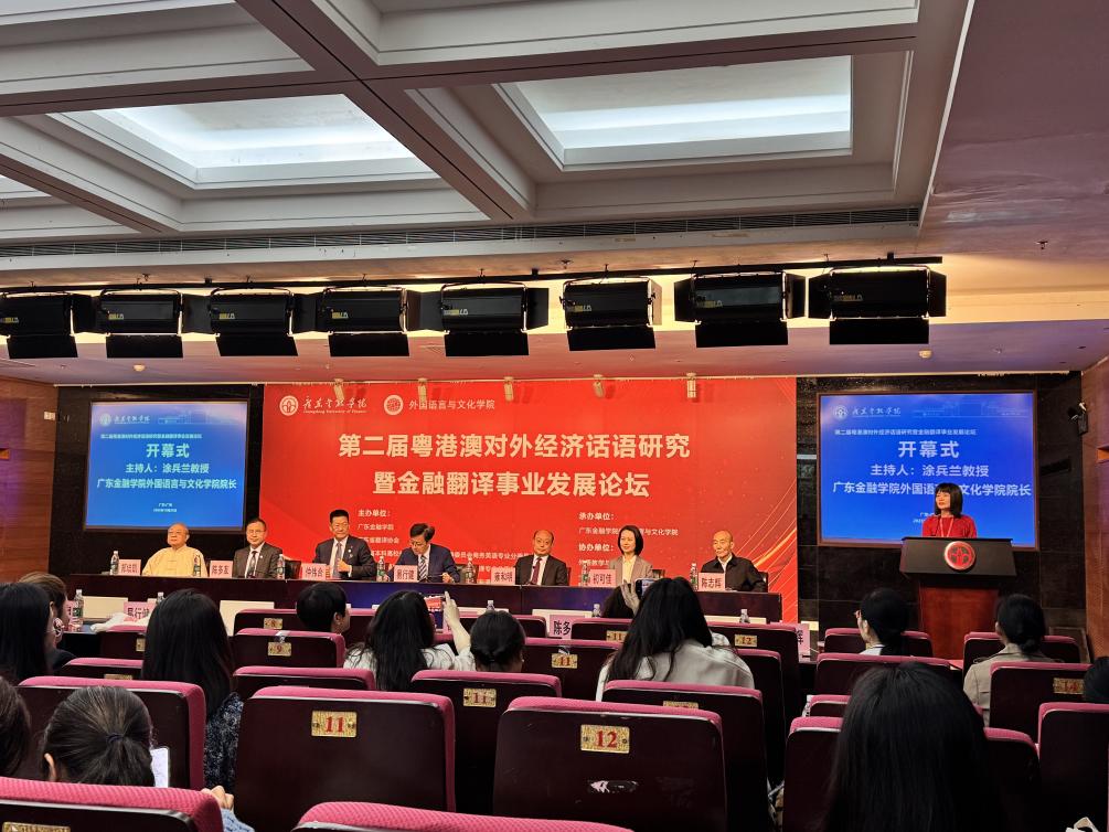 10月25日,“第二届粤港澳对外经济话语研究暨金融翻译事业发展论坛”在广东金融学院龙洞校区举行,外语学院院长刘沛富教授及教师李以晴、杨华迪、张永辉参加了本次论坛。论坛由广东金融学院联合广东省翻译协会及广东省本科高校外语类专业教学指导委员会共同主办,汇聚了近两百名来自粤港澳地区高校、金融行业及翻译领域的专家学者与企业精英,围绕人工智能时代对外经济话语与金融翻译的前沿议题展开深度研讨,为粤港澳大湾区对外经济交流与金融合作注入学术动能。