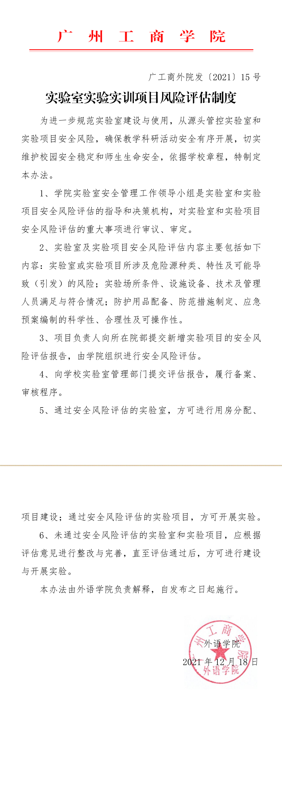 实验室实验实训项目风险评估制度