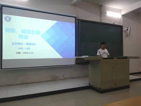 接着,孔令然又为同学们讲解了诚信开展资助活动的内容,他以诚信为主题为同学们叙述了诚信的重要性,希望我们能守住诚信准则。