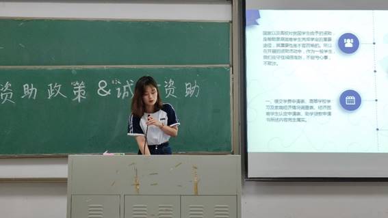 会议开始, 徐然为同学们详细地介绍了国家资助政策,以及国家对家庭经济困难学生资助工作的的高度重视,并为同学们解读了诚信的定义和意义。