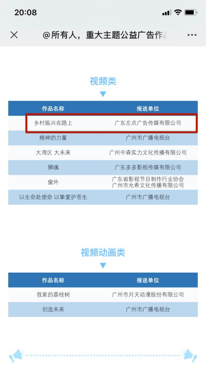 2021年度广东省重大主题公益广告精品征评获奖名单近日公布,校友企业广东左点广告传媒有限公司(主创:杨国华)的《乡村振兴在路上》喜获2021年度广东省重大主题公益广告精品征评视频类优秀创意作品奖,初评、复评均获全省第一名。本次获奖也是广东左点广告传媒有限公司第三年连续获此殊荣。