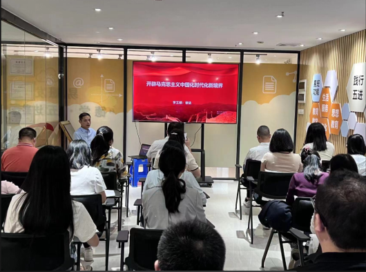 徐达围绕开辟马克思主义中国化时代化新境界的主题,从汲取信仰力量,坚定理想信念、抓好理论武装,加强阵地建设等方面作领学报告,并且结合工作实际,以社区为阵地强化“三全育人”实效;立德树人,以理念为指引构建“三全育人”体系,提出学生工作理念:厚植情怀,涵养品格;浸润学风,领航成长。引领学工团队,以坚如磐石的信心、坚韧不拔的毅力,苦练本领,强化担当,在新征程上,踔厉奋发,笃行不怠。