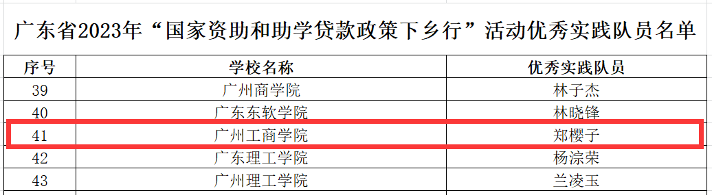 近日,广东省教育厅公布了2023年“国家资助和助学贷款政策下乡行”活动评选结果,全省共评选出142篇优秀调研报告、133名优秀实践队员和134名优秀指导老师。kaiyun《国家资助和助学贷款政策下乡行调研报告——以花都区花山镇铁山村为例》被评为“优秀调研报告”,学生处朱建丽获“优秀指导老师”荣誉称号,商学院郑樱子同学获“优秀实践队员”荣誉称号。