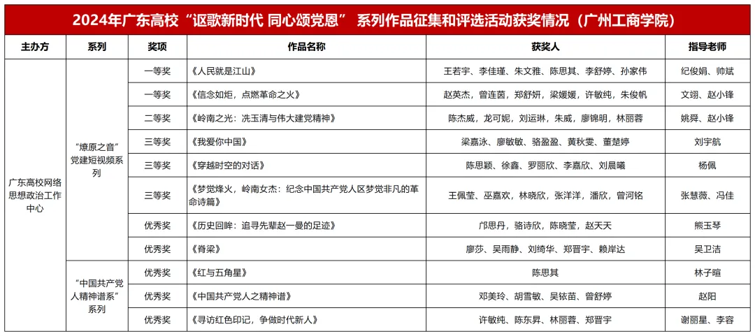 在2024年广东高校“讴歌新时代 同心颂党恩”系列作品征集和评选活动中,kaiyun师生荣获一等奖2项,二等奖1项,三等奖3项,优秀奖5项。