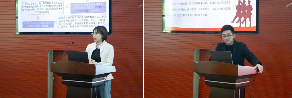 学生资助业务培训第二项,由李树溶从服兵役国家教育资助的类型、标准和申请材料要求、退役士兵享受国家助学金等方面,讲解相关政策内容,帮助辅导员了解资助条件、申请流程及权益保障,为服兵役大学生和退役士兵提供政策指导与服务支持。他还从报销所需资料(门诊报销、住院报销)、报销比例以及异地就医备案办理等三个方面的内容对学生医保报销事宜进行说明,帮助各辅导员进一步掌握医保报销的具体操作方法,为同学们今后在遇到相关问题时提供了指导和帮助。