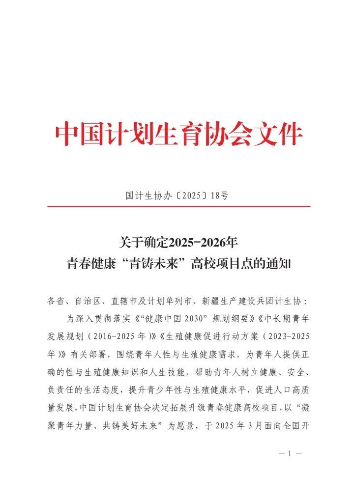 青春健康“青铸未来”项目是中国计生协为深入贯彻落实《“健康中国2030”规划纲要》《中长期青年发展规划(2016-2025年)》有关部署,围绕青年人性与生殖健康需求,为青年人提供正确的性与生殖健康知识和人生技能,帮助青年人树立健康、安全、负责任的生活态度,提升青少年性与生殖健康水平,以“凝聚青年力量、共铸美好未来”为愿景,面向全国开展的重要行动。