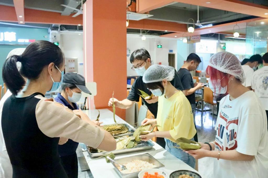 为推动传统文化融入校园生活,打造“德学·五进”特色校园文化,增进师生情谊,同时向辛勤付出的工勤人员致以谢意,在端午佳节来临之际,学生工作部携手后勤处、花都校区第一食堂、三水校区第一食堂,开展“一站式”学生社区浓情端午,“粽”享安康主题活动。通过包粽体验、包香囊、送温暖等沉浸式文化体验,让师生在氤氲粽香中互致祝福,把传统习俗化作同窗师友间最温暖的安康祈愿,也为工勤人员送去一份温暖。学生工作部相关负责老师、学生工作部学生融媒体中心、资助服务站和宿舍管理委员会学生代表、食堂工作人员共同参加此次活动。