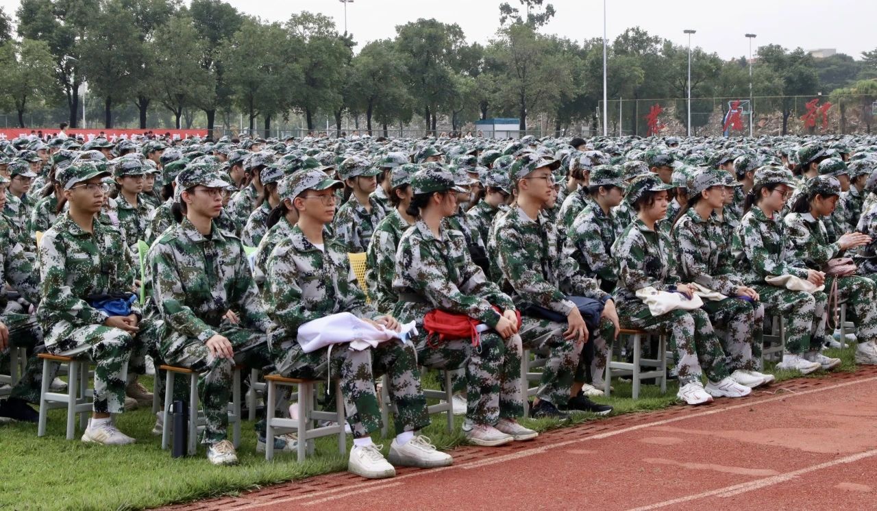 最后,伴随着激昂的军歌,校长王日华为新生军训团授旗。一面面旗帜被教官们郑重接过,手握军旗,风起旗扬,脸上的“骄傲”溢出屏幕。2023级新生开学典礼暨军训动员大会圆满结束!