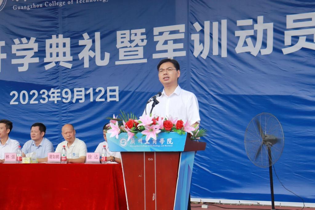 学校副校长、军训领导小组副组长朱特威代表学校对大力支持学校军训工作的单位及教官表示衷心的感谢,并对2023级新生的到来表示热烈的欢迎。他指出,军训在增强当代大学生国防观念和国家安全意识的同时,教育引导广大青年将个人理想、个人成长融入强国建设、民族复兴,争做中国特色社会主义事业的合格建设者和可靠接班人。朱特威副校长向同学们提三点希望和要求:一要坚定理想信念,达成军训的目标。二要锻炼意志品质,练就过硬的本领。三要坚决听从指挥,传承优良的作风。讲话最后,他鼓励青年们长志气、强骨气、厚底气,并预祝本次军训工作圆满成功。