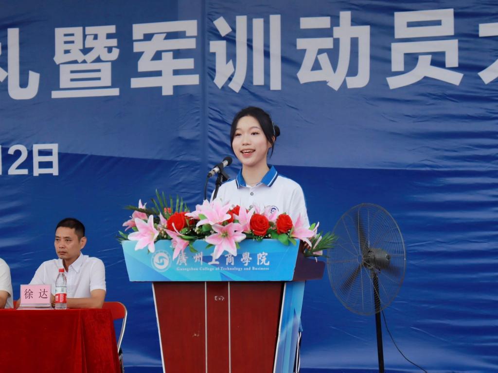 上午8点整,庄严的歌声奏起。伴随着嘹亮的国歌声,开学典礼拉开帷幕。昂扬向上的姿态展示了广工商学子的青春风采。
