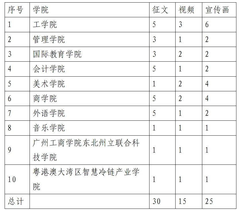 (2)各学院对该项活动的总结材料,包括本学院收集的所有参赛作品数量、活动传播资料、活动组织概况等。总结材料需交纸质版,盖学院章。