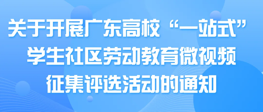 2.经评审后,学校学生工作部(处)将择优推荐至“广东高校‘一站式’学生社区劳动教育微视频征集评选活动”主办方参赛。推荐精品视频数量不超过10个。