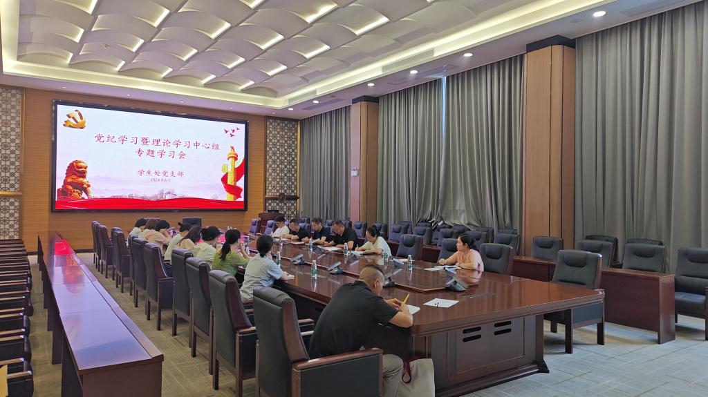 为持续推动学校党纪学习教育走深走实,按照学校机关党委工作部署,结合学生处党支部工作计划,6月28日上午,党支部在花都校区图书馆412召开党纪专题学习会暨理论学习中心组专题学习,会议由学生处党支部书记孙洪波同志主持,学生处全体党员参加。