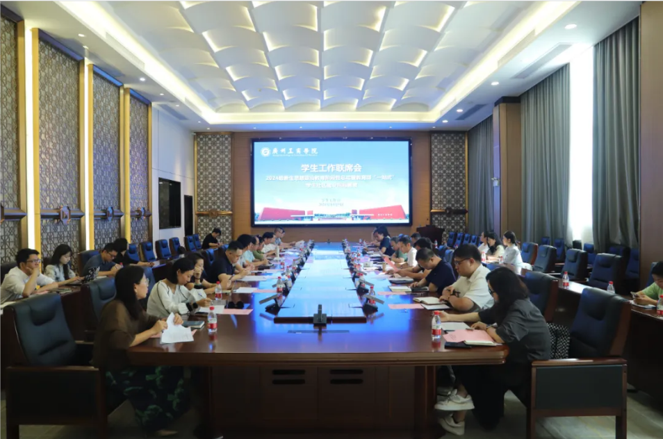 10月9日,学工联席会在花都校区图书馆412会议室举行。此次会议旨在总结2024级新生思想政治教育阶段性成果,并对教育部“一站式”学生社区建设指标进行解读。会议由学生工作部副部长江明俊主持,学校党委书记张振超、学校副校长朱特威、学生工作部部长徐达、学校团委书记洪卫烈、学生工作部副部长苏建贤,各二级学院负责学生工作的副院长及学工办主任、学生工作部各中心主任等出席会议。