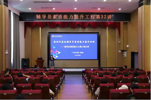 6月27日下午,以“新时代高校辅导员素质能力提升攻略:辅导员素质能力大赛心得分享”为主题的辅导员素质能力提升工程第32讲在花都校区图书馆415室举行。此次讲座由广东高校第十届高校辅导员素质能力大赛一等奖获得者、广东科技学院辅导员张静静主讲,学校学生工作部(处)副部长苏建贤担任主持人。全校辅导员及思想政治教育中心成员参与本次讲座。