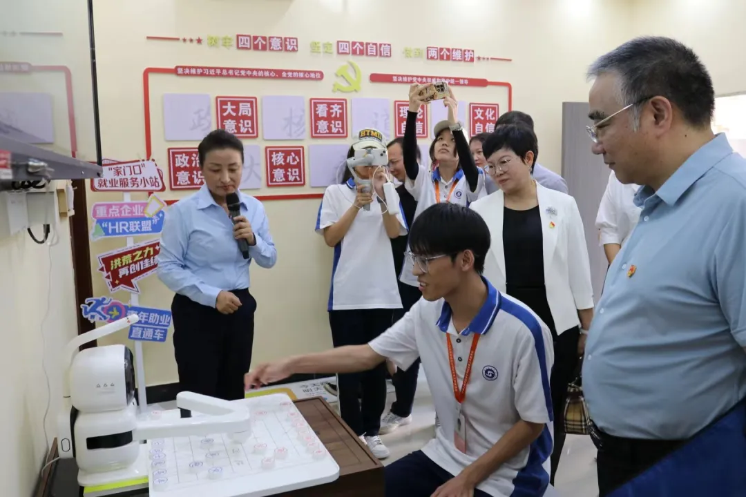 揭牌仪式结束后,领导嘉宾及与会师生移步室内进行参观体验。全桂艳副书记对社区室内各功能区进行一一介绍,“一站式”学生社区的学习区、生活服务区及阅读休闲娱乐区等功能区域一应俱全,展现了学生社区的多元性与便捷性。领导嘉宾对“筑梦家园”一站式学生社区给予了高度的评价,社区真正做到了以学生为中心,为大学生提供了一个温馨、舒适、便捷的学习生活空间。