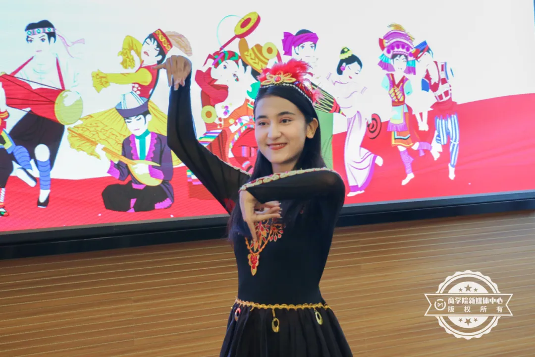 开场由维吾尔族学生代表所带来的舞蹈表演《维吾尔族——有那么一个地方》,那欢快的旋律与舞者灵动的舞步完美结合,让大家沉浸在浓郁的民族风情之中,这场舞蹈表演不仅是一场精彩的视觉盛宴,更是一次文化的交流与碰撞。
