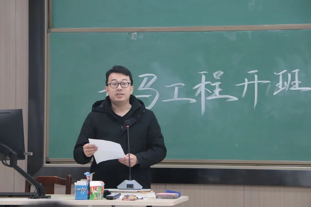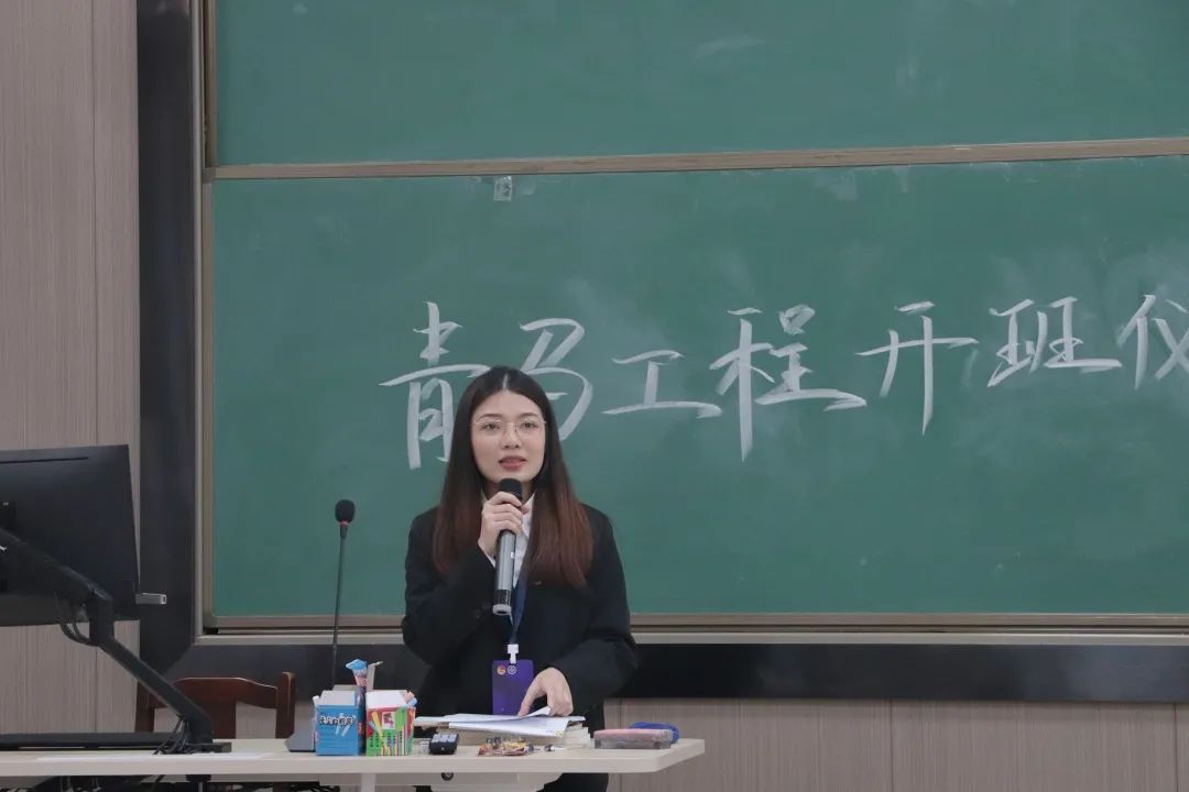 紧接着,团总支书记吴飞老师上台进行青马致辞。在致辞中,吴飞老师对各位学员提出了两点要求:第一,要胸怀祖国,志存高远,时刻以青年马克思主义者的标准来衡量自己;第二,不要辜负党对青年的热切关怀和热切希望,牢固树立跟党走的理念,要有坚持走中国特色社会主义道路的坚定信念。